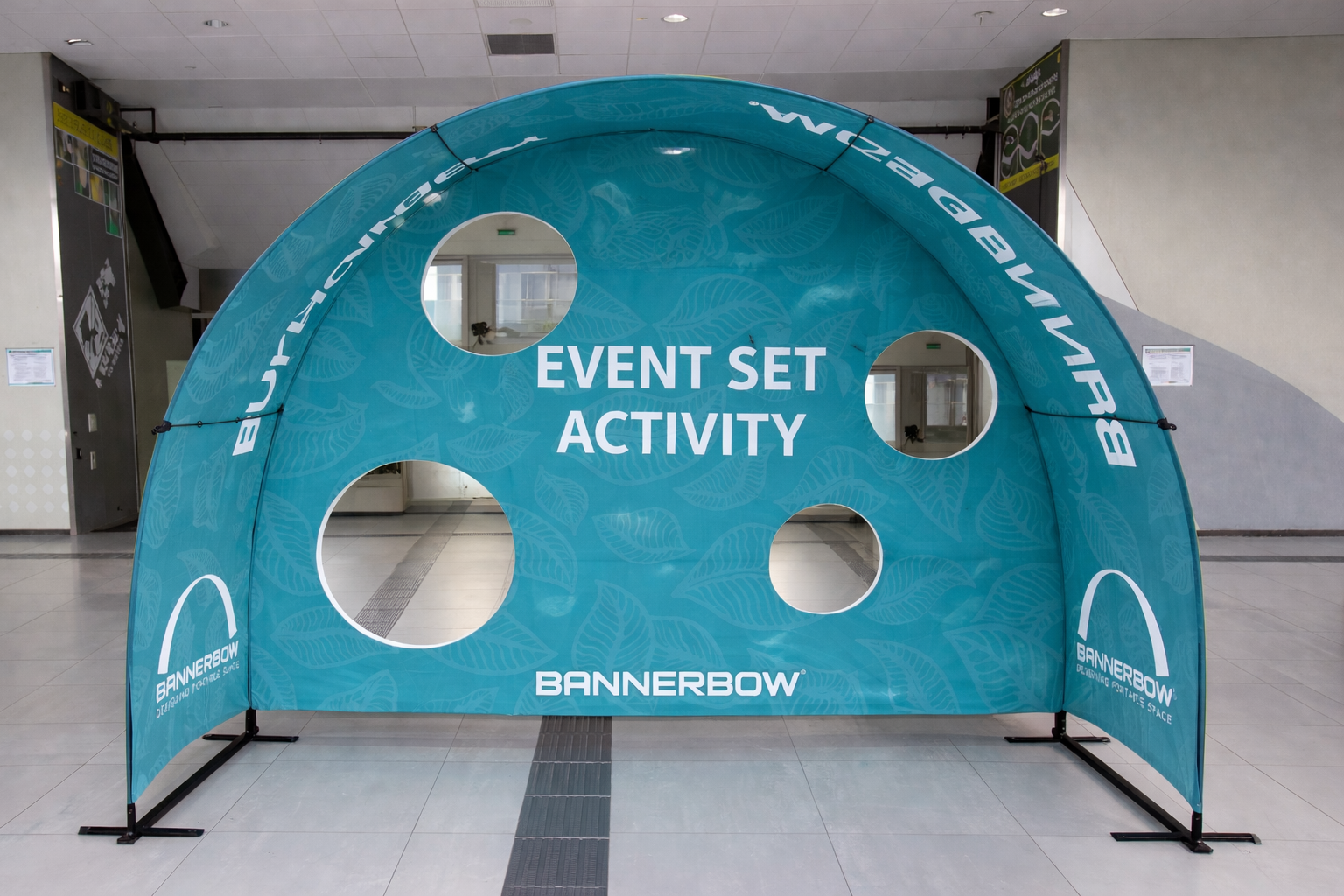 Bannerbow Event Set Activity is designed to create engagement, interaction, and memorable experiences at your event. The perforated Backdrop features integrated cut-out holes, making it ideal for interactive games and activities involving balls such as footballs, handballs, tennis balls, or golf balls.